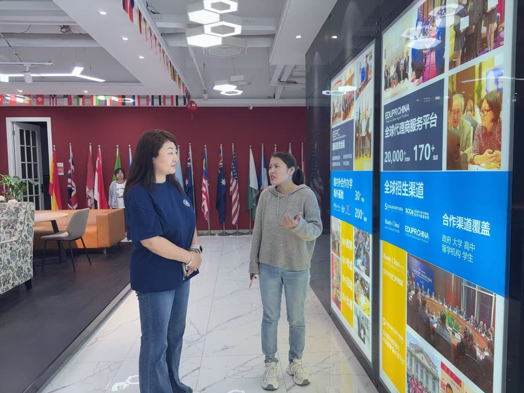 调研团队来到南京双日教育科技有限公司,就留学生事务合作进行深入交流。南京双日教育科技院校部经理李明莉及相关负责人对我院到访表示热烈欢迎。会上,李明莉详细介绍了公司的发展历程、现状以及未来的发展规划。段慧子则着重介绍了学院近年来在留学生招生、培养管理等方面的具体情况,并分享了学院院未来留学生工作的发展方向。双方就未来的合作模式进行了深入探讨,并就如何更好地促进留学生教育质量提升、拓宽留学生就业渠道等问题进行了交流。