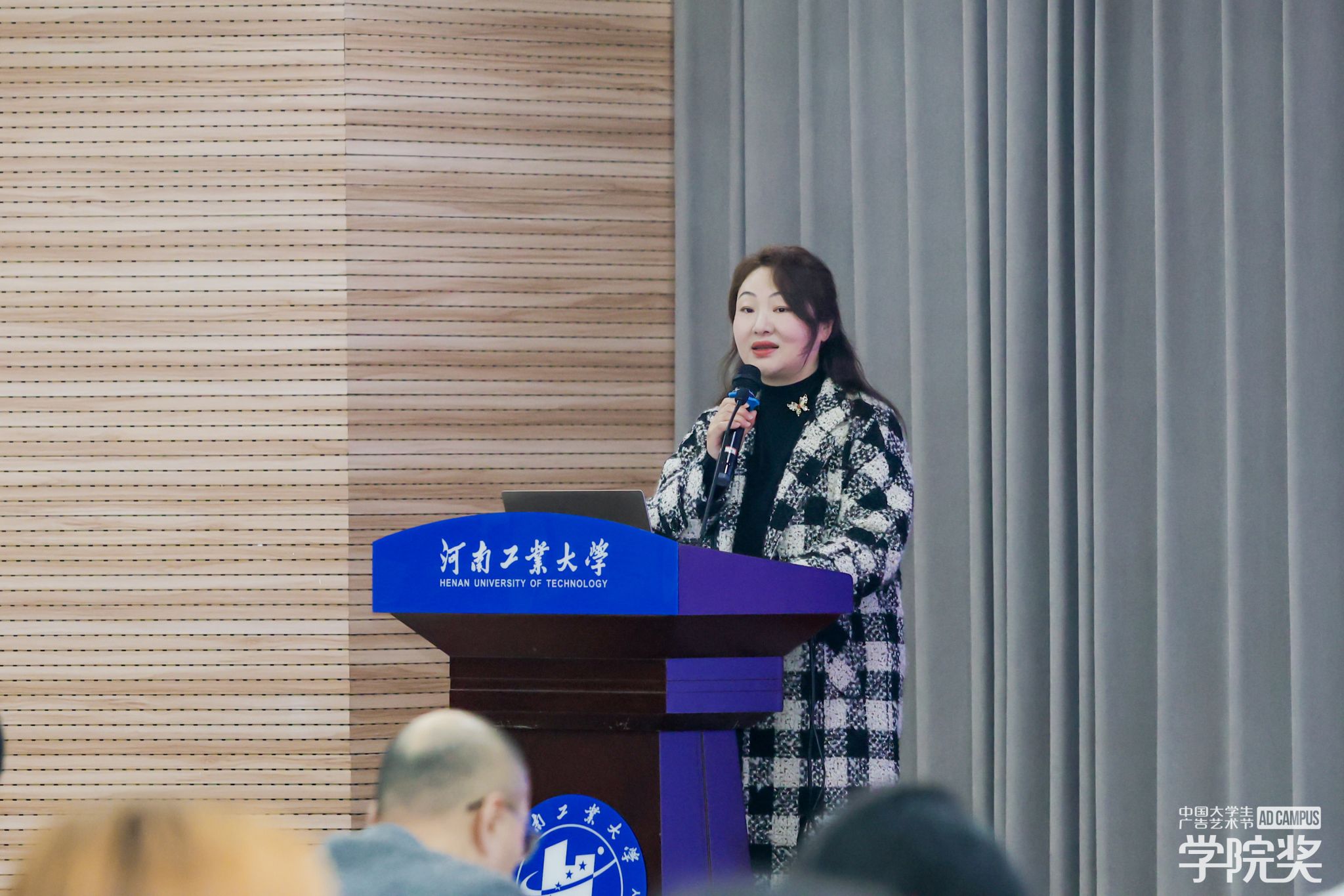 段慧子书记代表学院致辞,指出大学生广告艺术节学院奖是推动广告行业产学研一体化、检验学生专业能力及开展创新教育的重要平台。学院将借此结合 “四创”“四实” 教学模式与导师工作室育人特色,把行业需求与课程深度融合,在广告创作中融入青春活力,让每一件作品都成为彰显青年担当、传递时代价值的生动载体。同时,助力学生成长为能担当行业发展与民族复兴重任的设计人才,为广告行业和文化创意产业发展贡献力量。