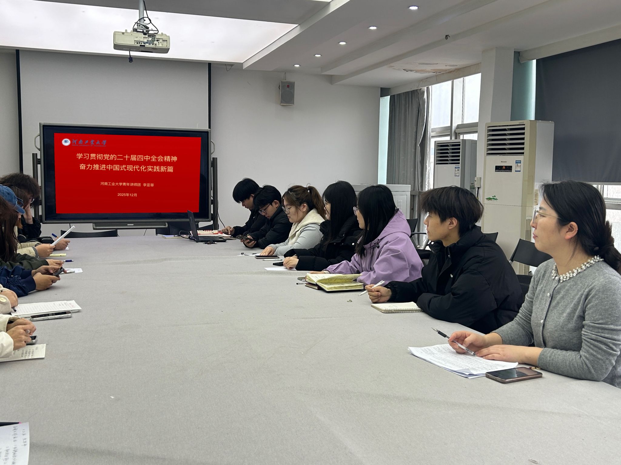 为推动党的二十届四中全会精神落地生根,引导青年学子精准把握时代发展方向、厚植家国情怀。12月8日,校青年讲师团成员李亚菲老师与大学生理论宣讲团成员程佳怡同学在博雅楼428会议室开展党的二十届四中全会精神专题宣讲活动。来自设计艺术学院的青马班成员、入党积极分子等60余名学生代表参加宣讲会。