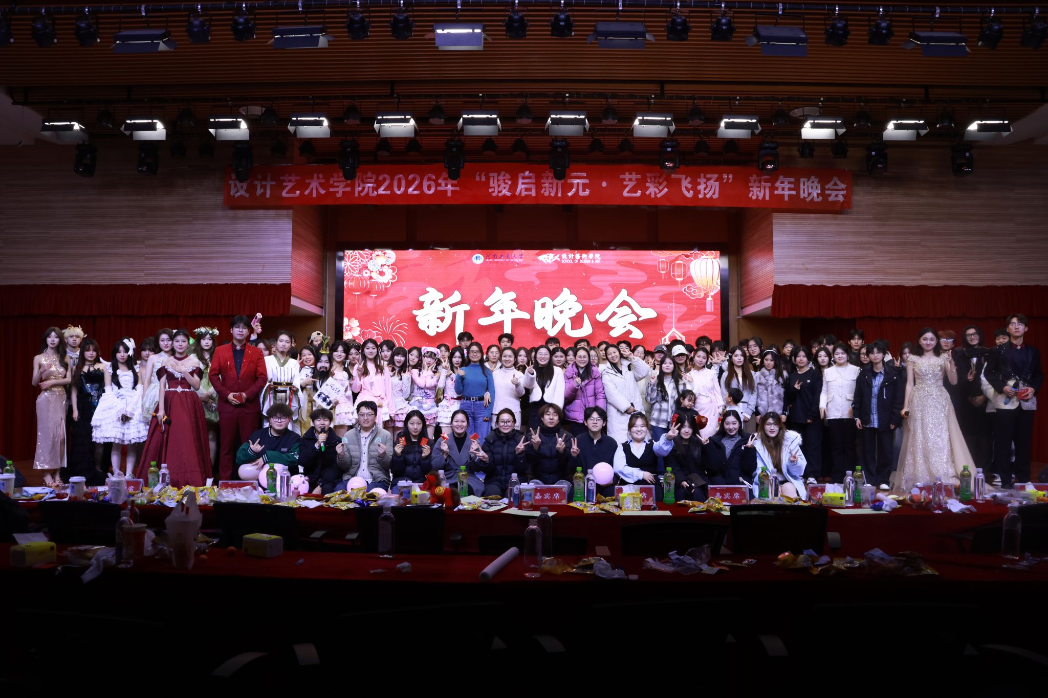 盛会落幕,温情永存。两个小时的联欢在全体观众和演职人员的合影中圆满结束。此次新年晚会的成功举办,不仅展现了我院学子精彩绝伦的才艺,更拉近了师生间的情感距离,也为全院师生送上了诚挚美好的新年祝福。展望2026,设计艺术学院全体师生将以更加开放的胸怀、更加务实的行动,凝心聚力、携手共进,在“双一流”创建中奋力拼搏。让我们以梦为马、不负韶华,在新的一年里续写辉煌篇章,为学校的高质量发展注入源源不断的智慧与力量!
