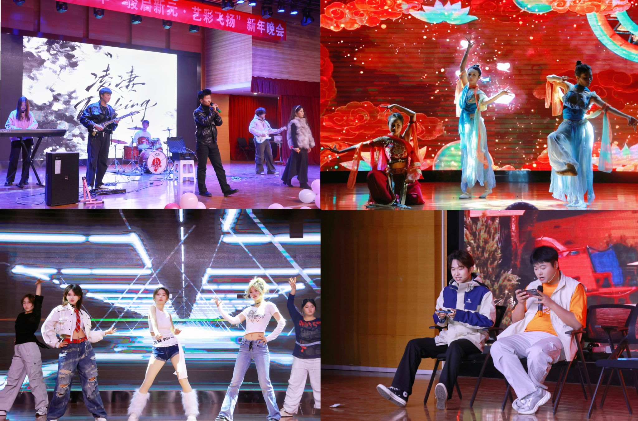 晚会在电声队歌曲《鲜花》中拉开帷幕,以“骏启新元 艺彩飞扬”为主题,设四个篇章,涵盖舞蹈、歌曲、小品等多种艺术形式的13个节目层层递进,全方位展现了学子的青春活力与艺术表达力。晚会节目精彩纷呈,青春动感与古典雅致兼具。舞蹈《Love119》《What is love》尽显青春蓬勃朝气与欢快氛围,古典舞《丝路幻影》以曼妙舞姿勾勒丝路意境,舞蹈串烧《如果你不笑我就求你笑》创意十足;声乐队《致爱》《至少还有你》以温柔深情的演绎引发共鸣,曲艺队《一起去露营》《三顾茅庐》凭借诙谐剧情赢得阵阵欢笑与掌声。此外,礼模队走秀《森境灵踪》艺术设计巧思与时尚韵味深度融合,将气氛推向高潮;研会朗诵《研途逐光》诉说科研初心,尾声歌曲串烧《青春节拍·佳节欢歌》唤起全场师生跟唱,温馨氛围萦绕全场。