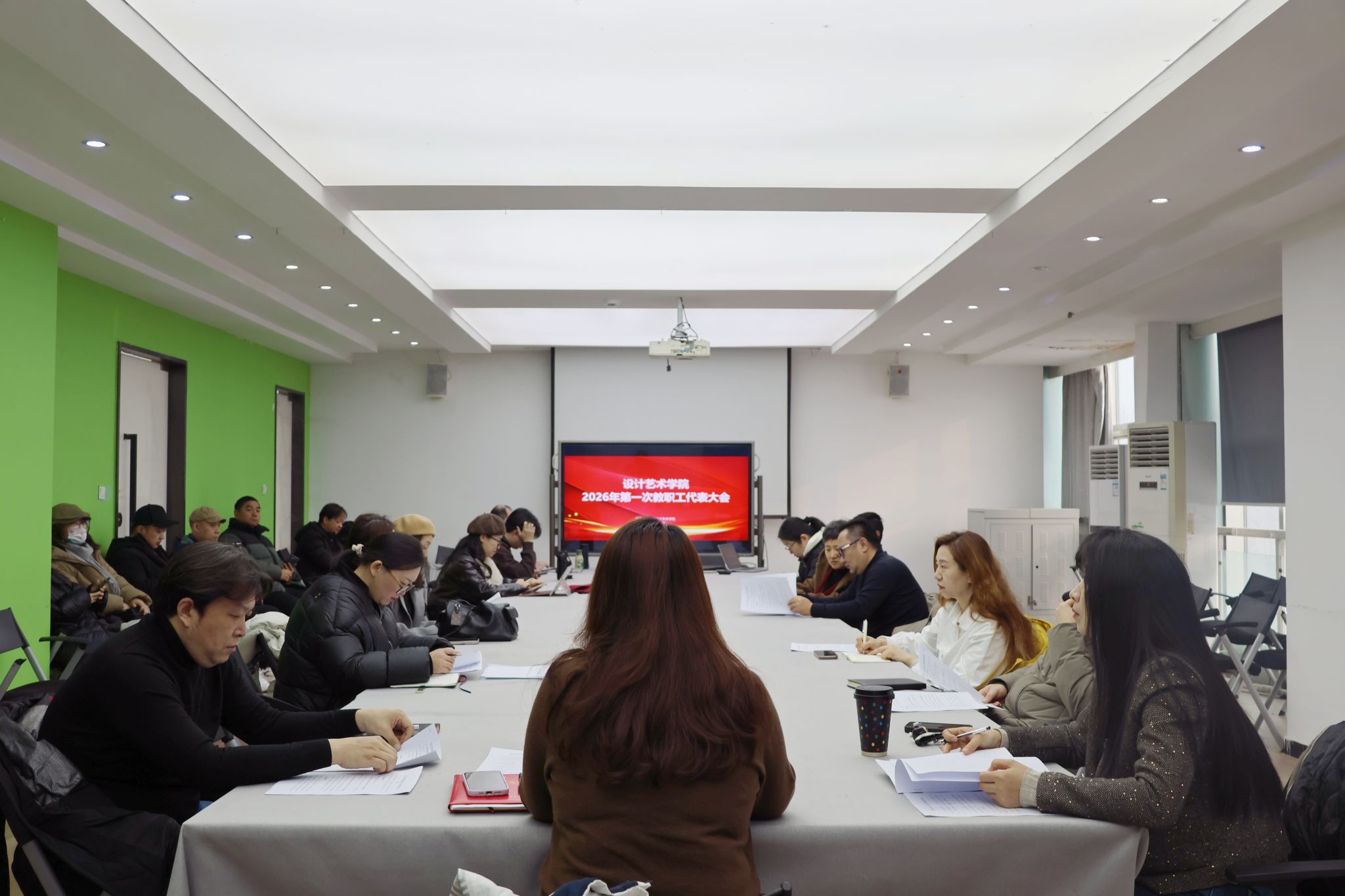 1月27日,设计艺术学院2026年第一次教职工代表大会在18428会议室召开。学院全体教代会代表参加本次会议。会议由学院党委副书记、纪委书记朱玲玲主持。