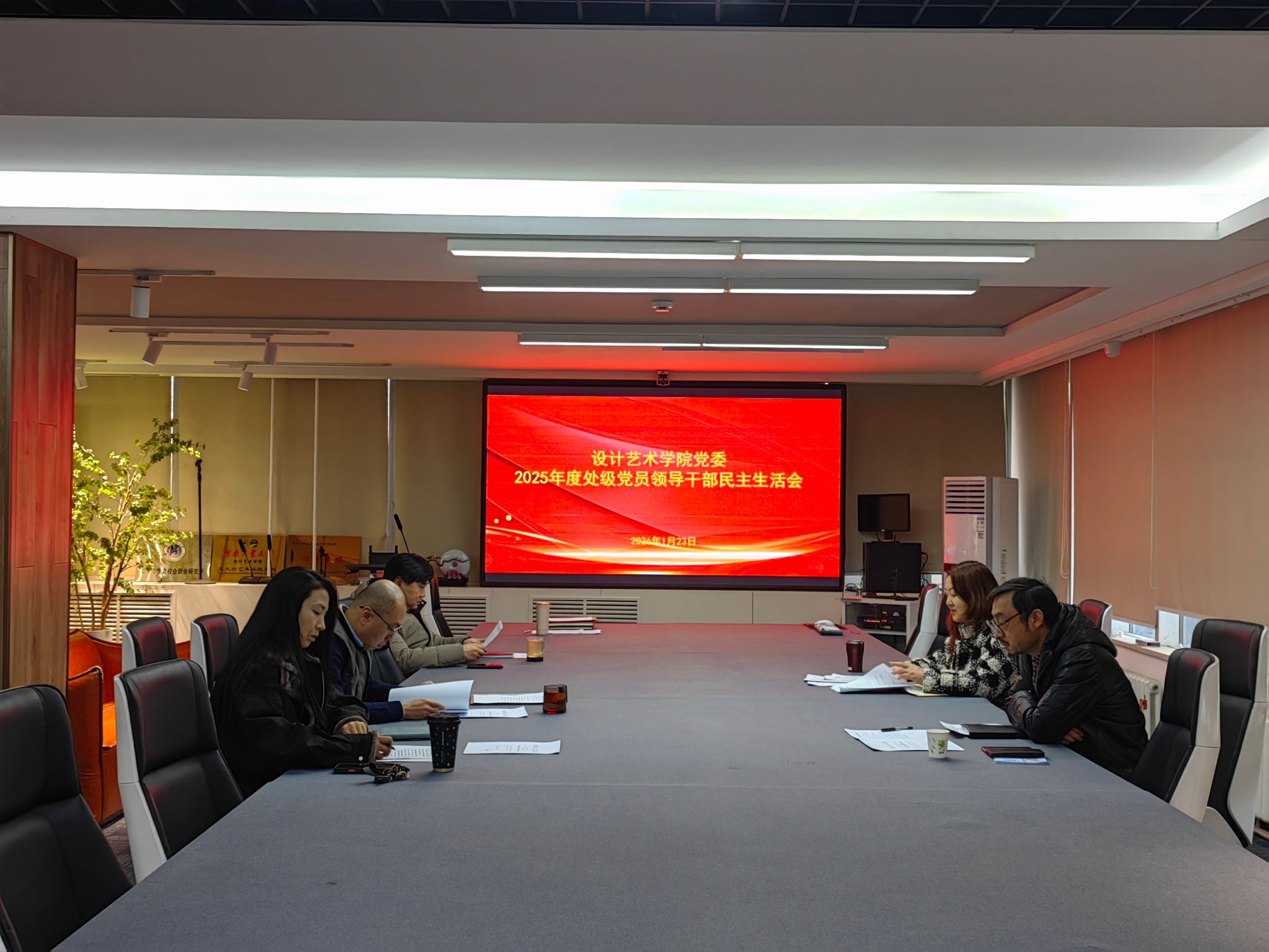 设计艺术学院党委于1月23日在河南省工业设计研究院会议室召开2025年度处级以上党员领导干部民主生活会。学院领导班子全体成员参加会议,会议由党委书记段慧子主持。