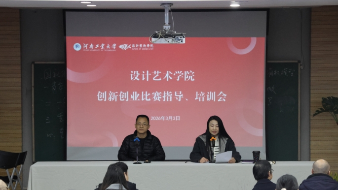 为深入贯彻落实国家创新驱动发展战略,全面提升学院创新创业教育水平和竞赛指导能力,3月3日下午,设计艺术学院在18018报告厅召开创新创业指导专题培训会。会议特邀河南省教学名师、国家一流课程负责人信息科学与工程学院吕宗旺教授作专题指导,学院领导班子成员及全体教职工参加会议。会议由学院党委副书记朱玲玲主持。