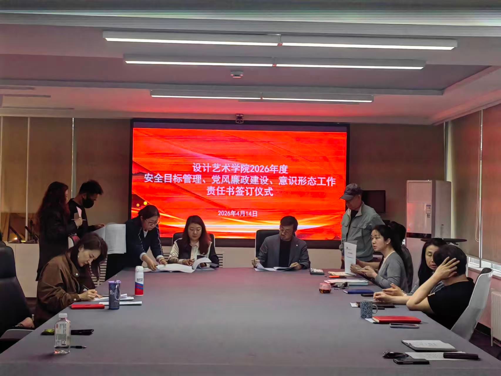 最后,学院和专业负责人、工作室负责人、各科室负责人、教工党支部书记签订《设计艺术学院2026年度安全目标管理责任书》、《设计艺术学院2026年度党风廉政建设责任书》、《设计艺术学院2026年度意识形态工作责任书》,明确了目标任务压实了工作责任。