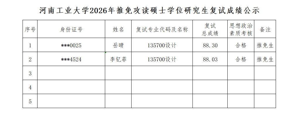 设计艺术学院2026年推免攻读硕士学位研究生复试成绩公示